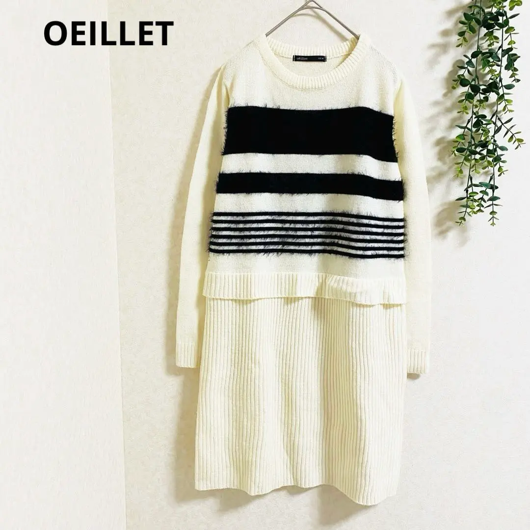 ウイエ ニットワンピース M ボーダー柄 ふわもこ 体型カバー 楽ちん