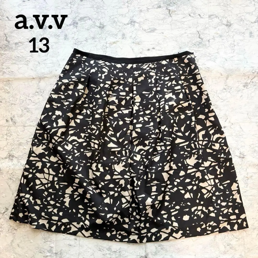 【a.v.v】アーヴェヴェ 総柄フレアスカート 大きいサイズ 13 XL 上品