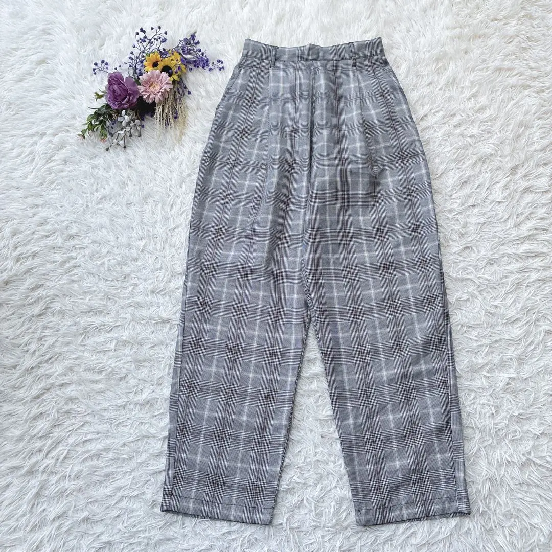 美品*レイカズン テーパードパンツ 後ろゴム カジュアル チェック柄 グレー系