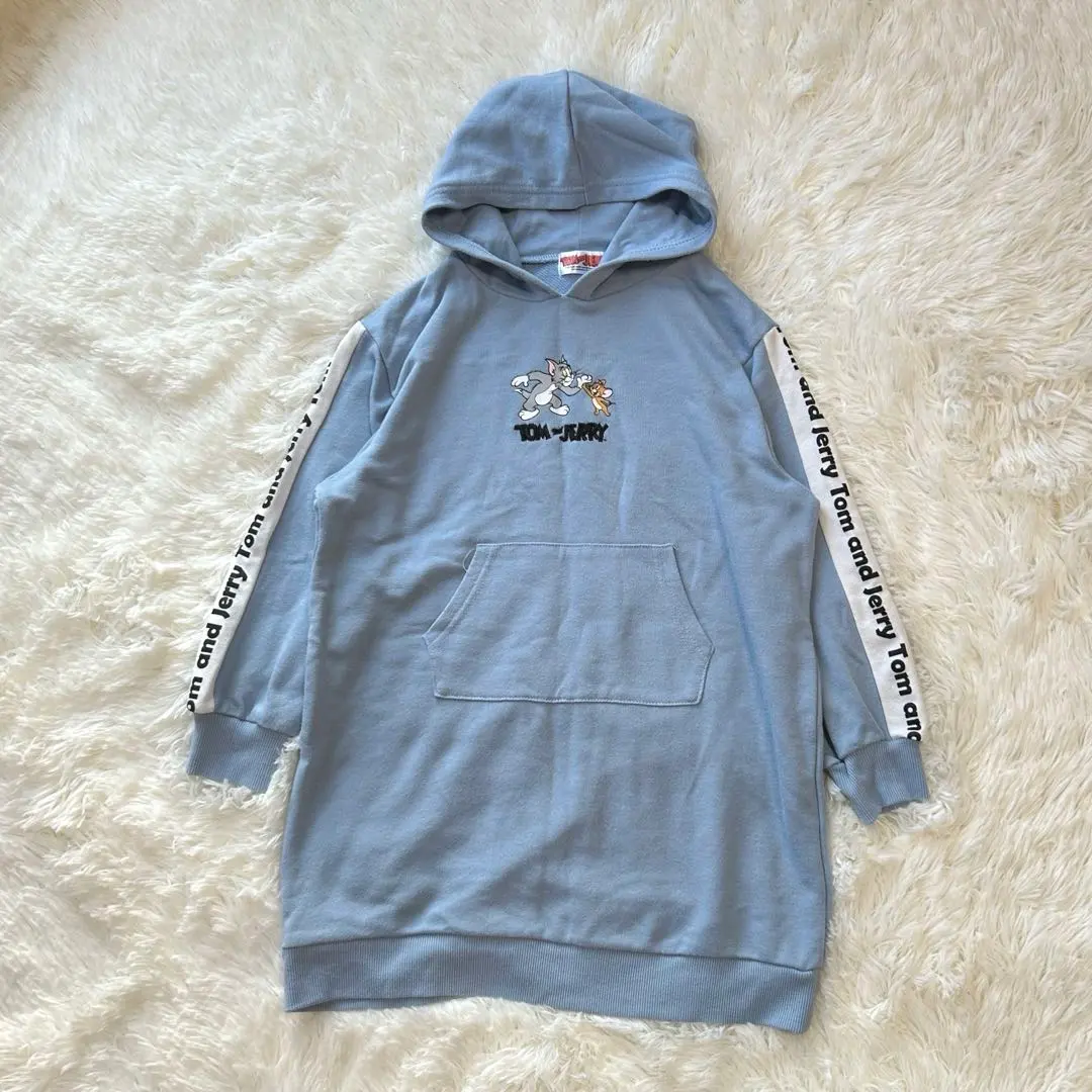 トム&ジェリー〔130〕パーカー ワンピース 刺繍 英字プリント フード
