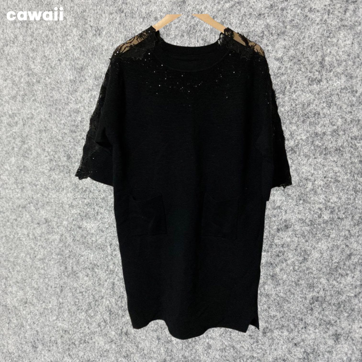 CAWAII FRENCH PAVE 黒レース袖大人輝くワンピース Fサイズ