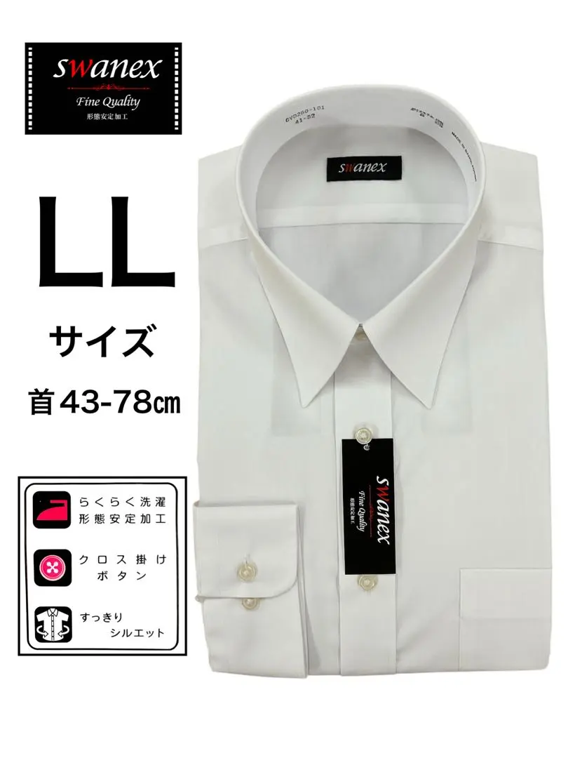 新品☆山喜社 白 長袖ワイシャツ 形態安定加工 LLサイズ 首43-ゆき84㎝