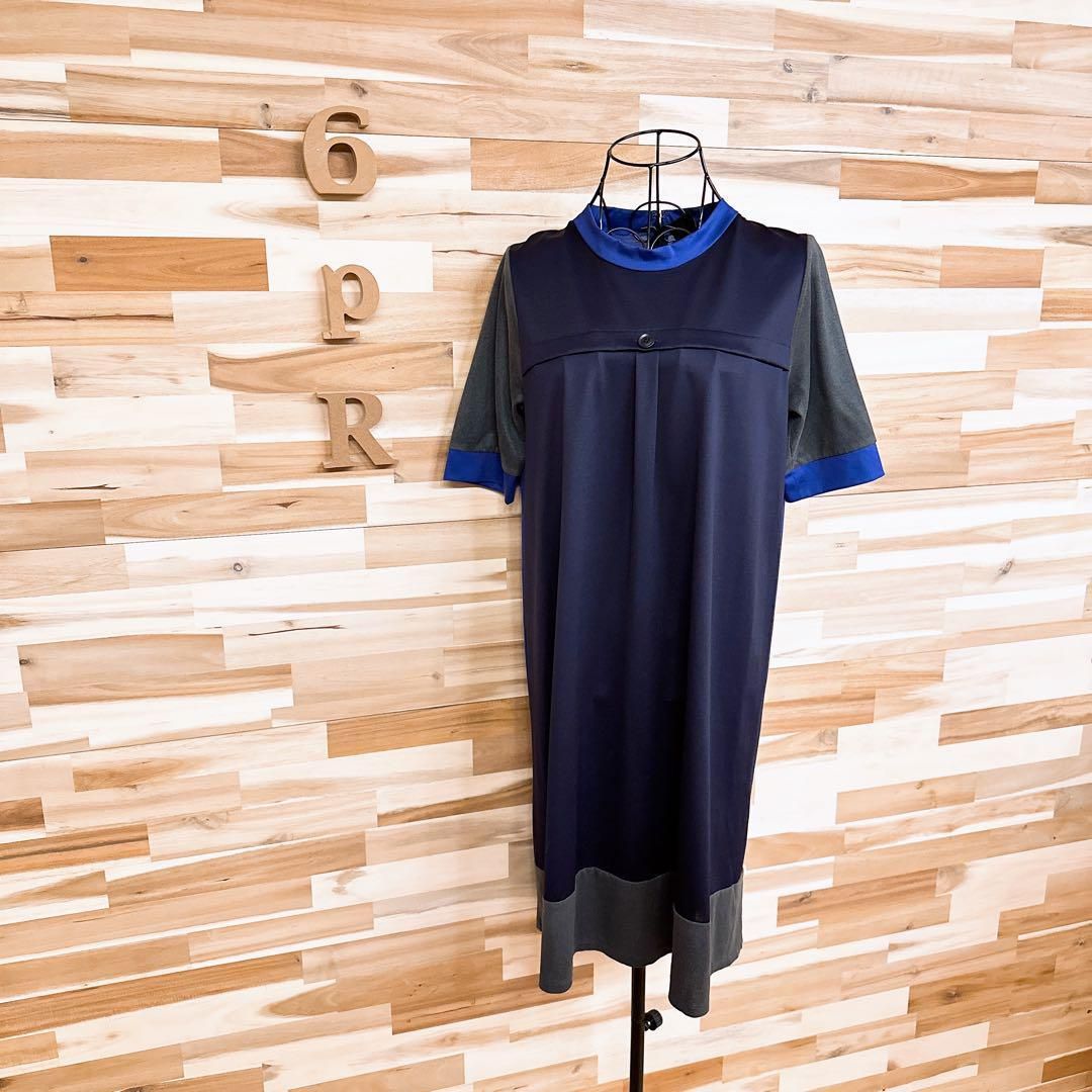 【ギャルデコレクティブ】異素材 ドッキング 配色カラー ワンピース 紺×グレー