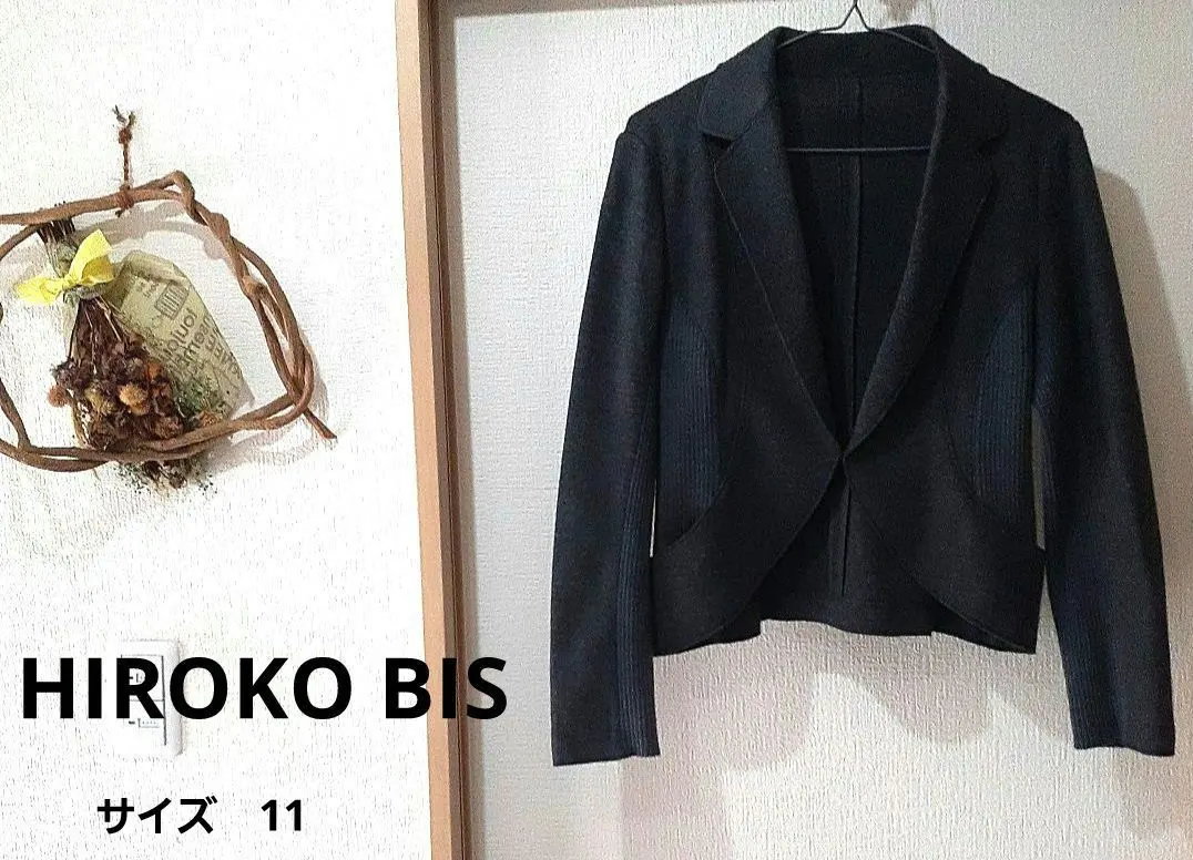 【HIROKO BIS】美品 ダークグレー ショート丈ジャケット ウール100%