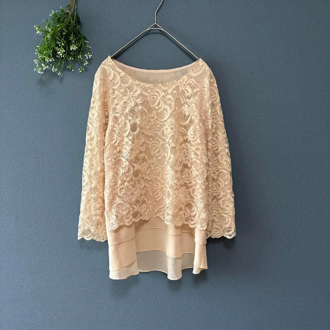 ノーリーズソフィ[M]フラワーレースティアードブラウス 八分袖花柄レーストップス