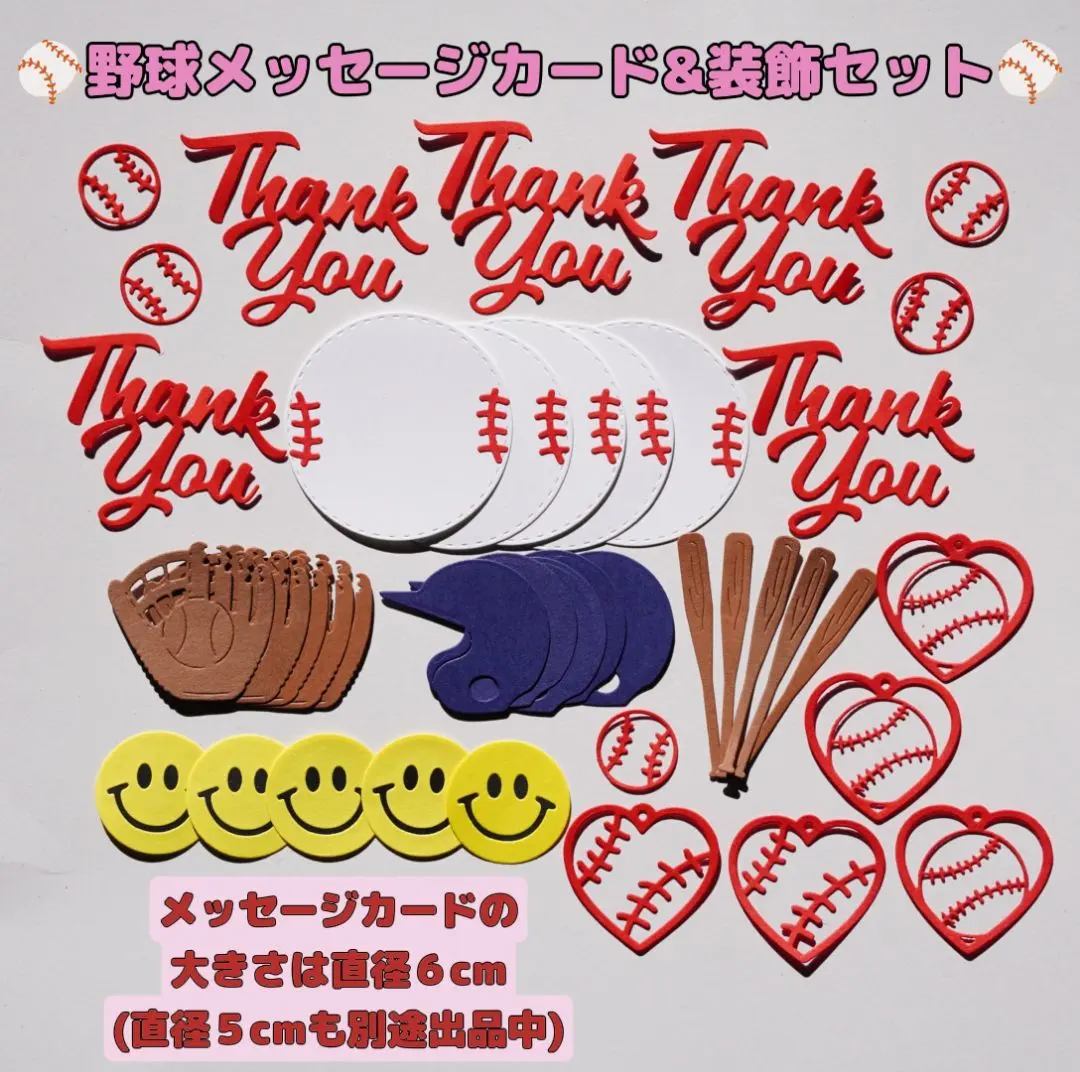 豪華版☆野球メッセージカード(直径6cm)&飾り付けパーツ詰め合わせ46枚入♡