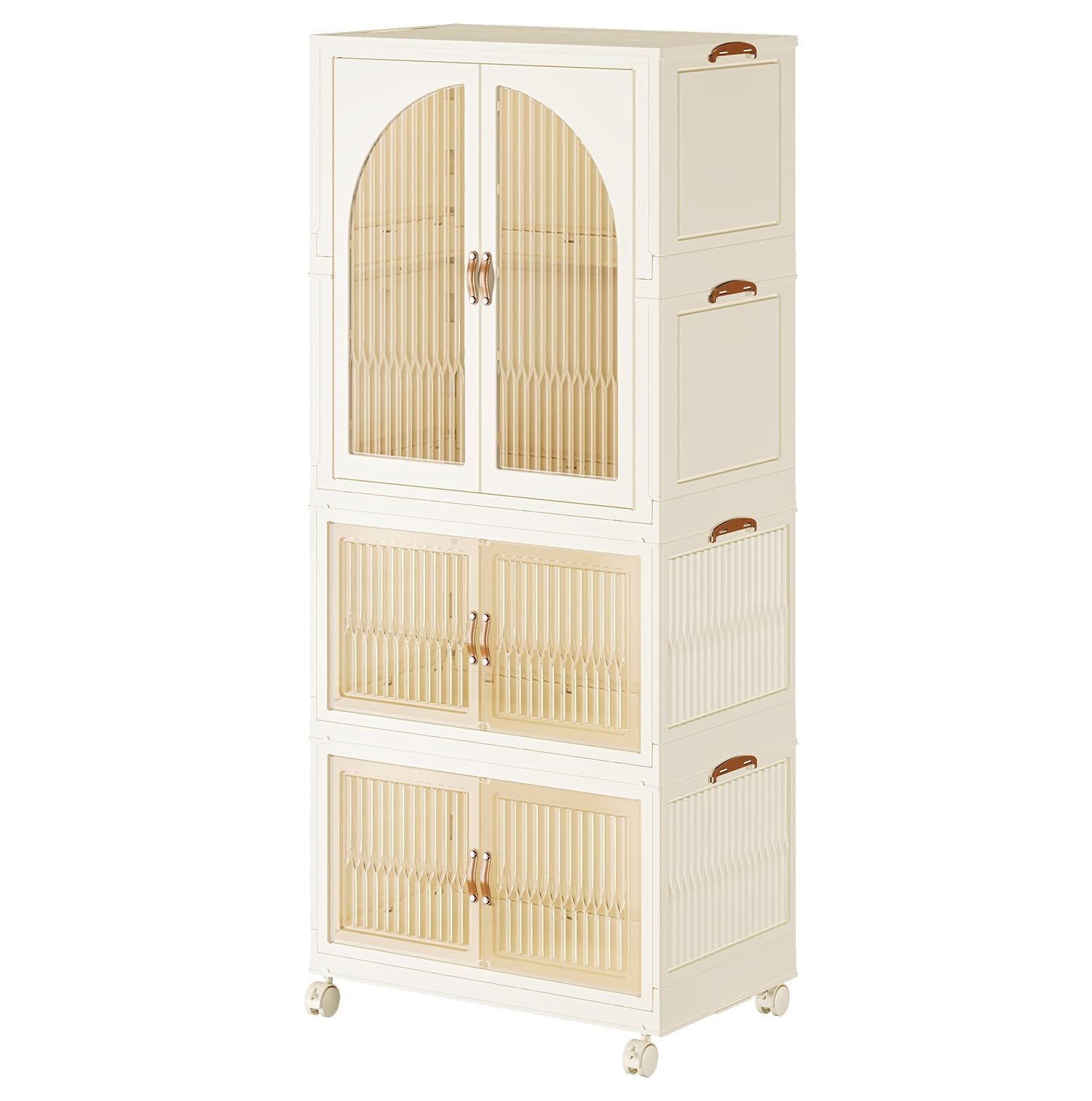Size:A.幅55×奥行32.5×高さ126.5cm YOSTORYA ワードローブ 折りたたみ クローゼット+ 収納ボックス インストール-不要 プラスチック ワードローブ (10個 ハンガー フリー キット付き) ロッカー 収納 キャビネット ホワイト