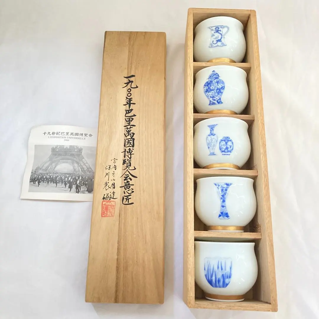 【未使用 箱付】深川製磁 煎茶碗揃 1900年巴里万博博覧会意匠