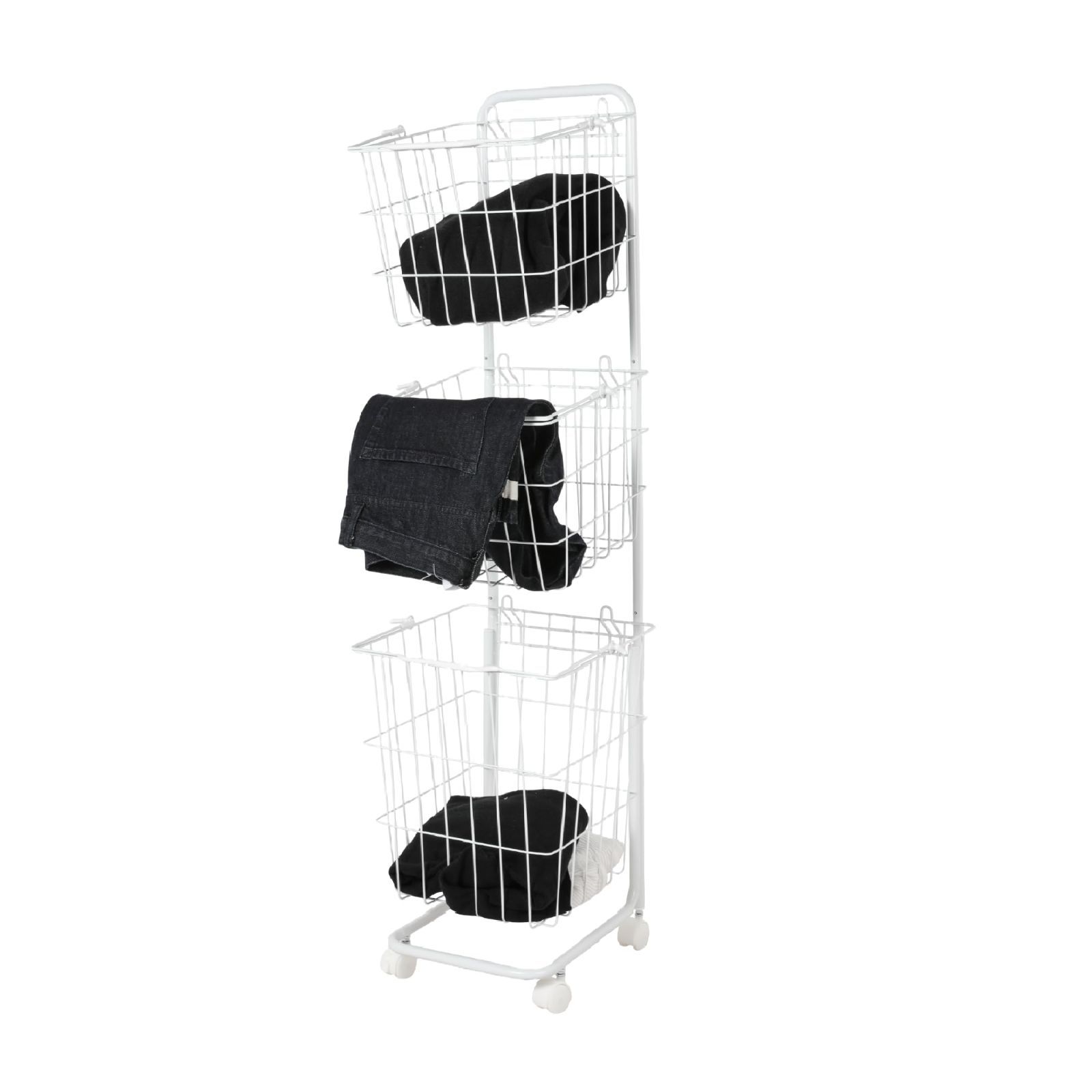 ホワイト 通気性いい 取り外しバスケット 収納ラック 持ち手付き キャスター付き 四角い ランドリー収納 洗濯物収納 3段 大容量 ランドリーバスケット 洗濯かご Saiveina
