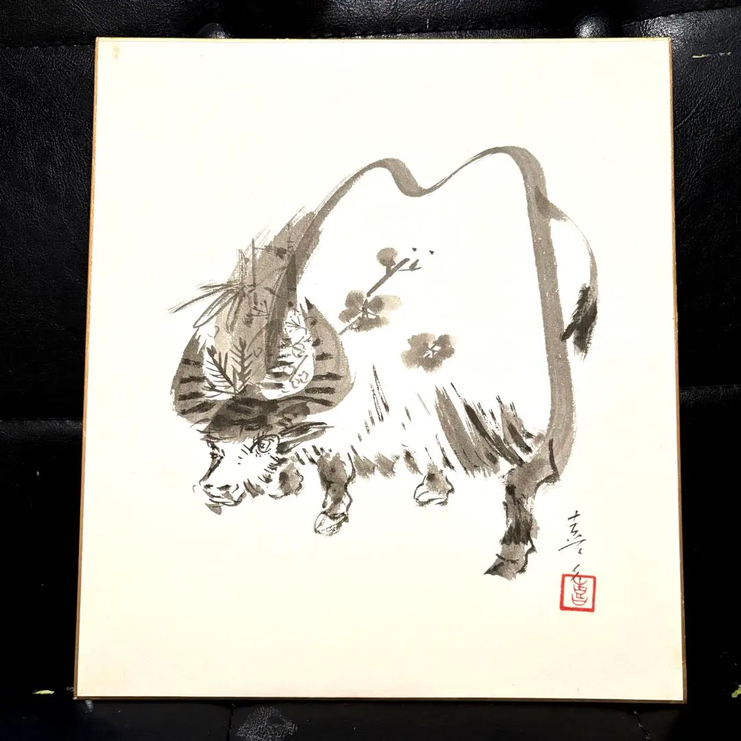 真作保証 渡部紘巳 山水画 水墨画 落款 サイン入り 画寸h13×w18cm
