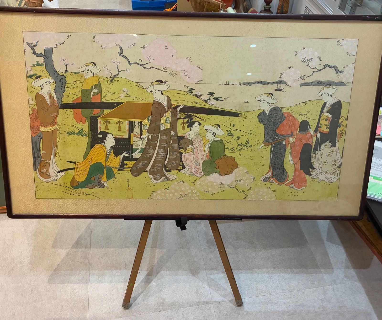 模写 光氏磯遊び其二 三枚続 浮世絵木版画 版画 鳥文斎栄之 額装 額入り