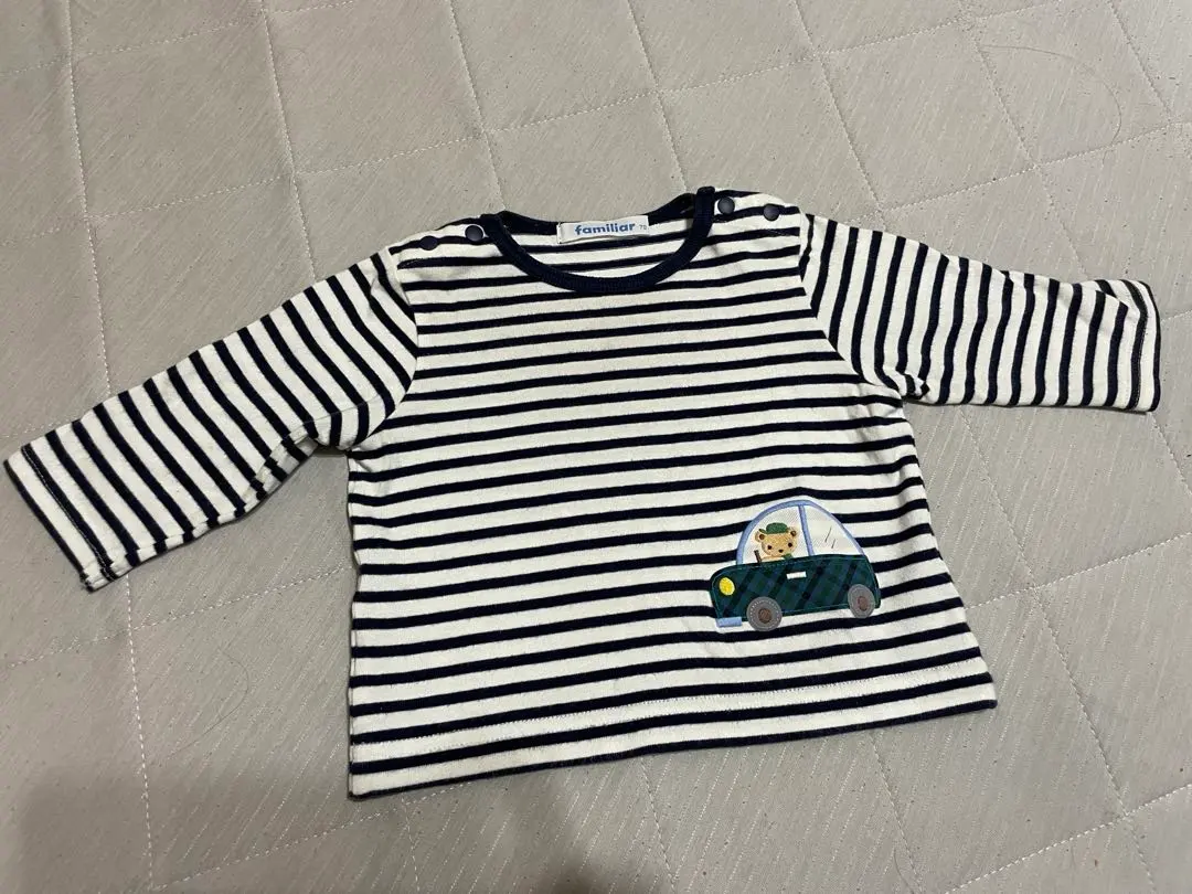 ファミリア familiar ストライプ柄 車刺繍 ベビーTシャツ 70cm