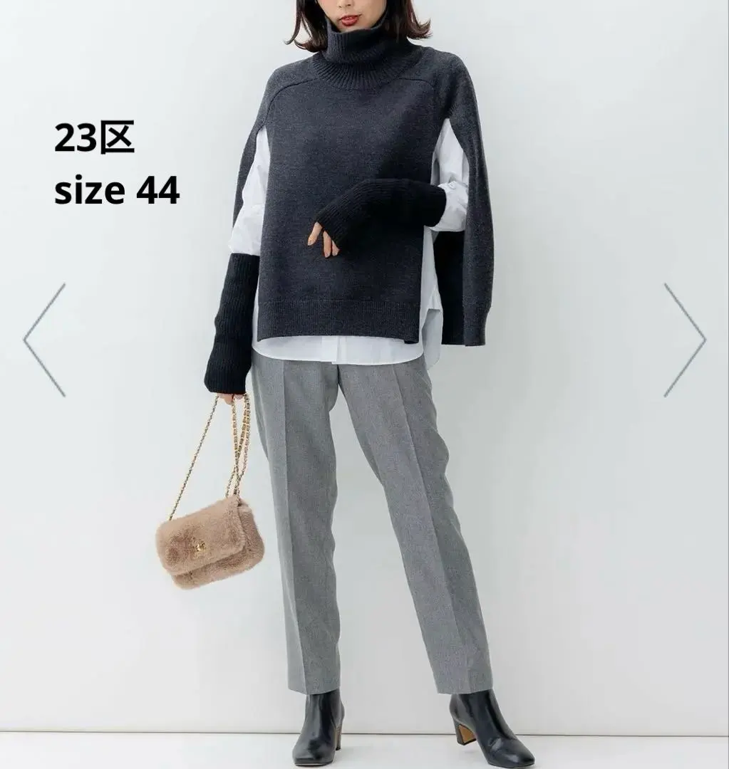 23区 44 ニットポンチョ ニットベスト タートル 大きいサイズ ウール
