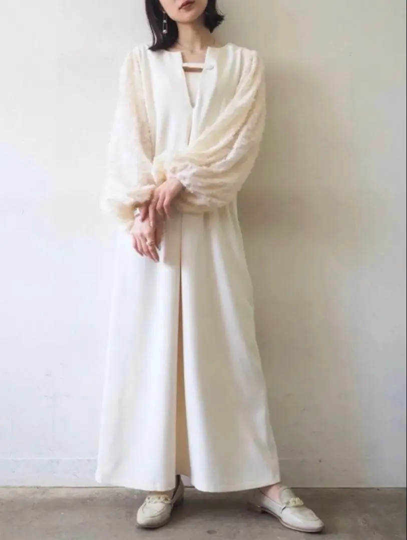 Lumier リュミエ シアージャガードスリーブ2WAYワンピース アイボリー
