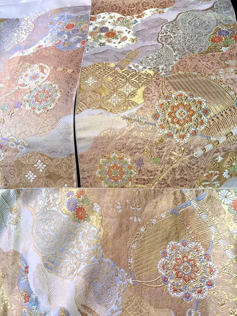 金色 唐織 花文 六通柄袋帯 正倉院文様 金糸