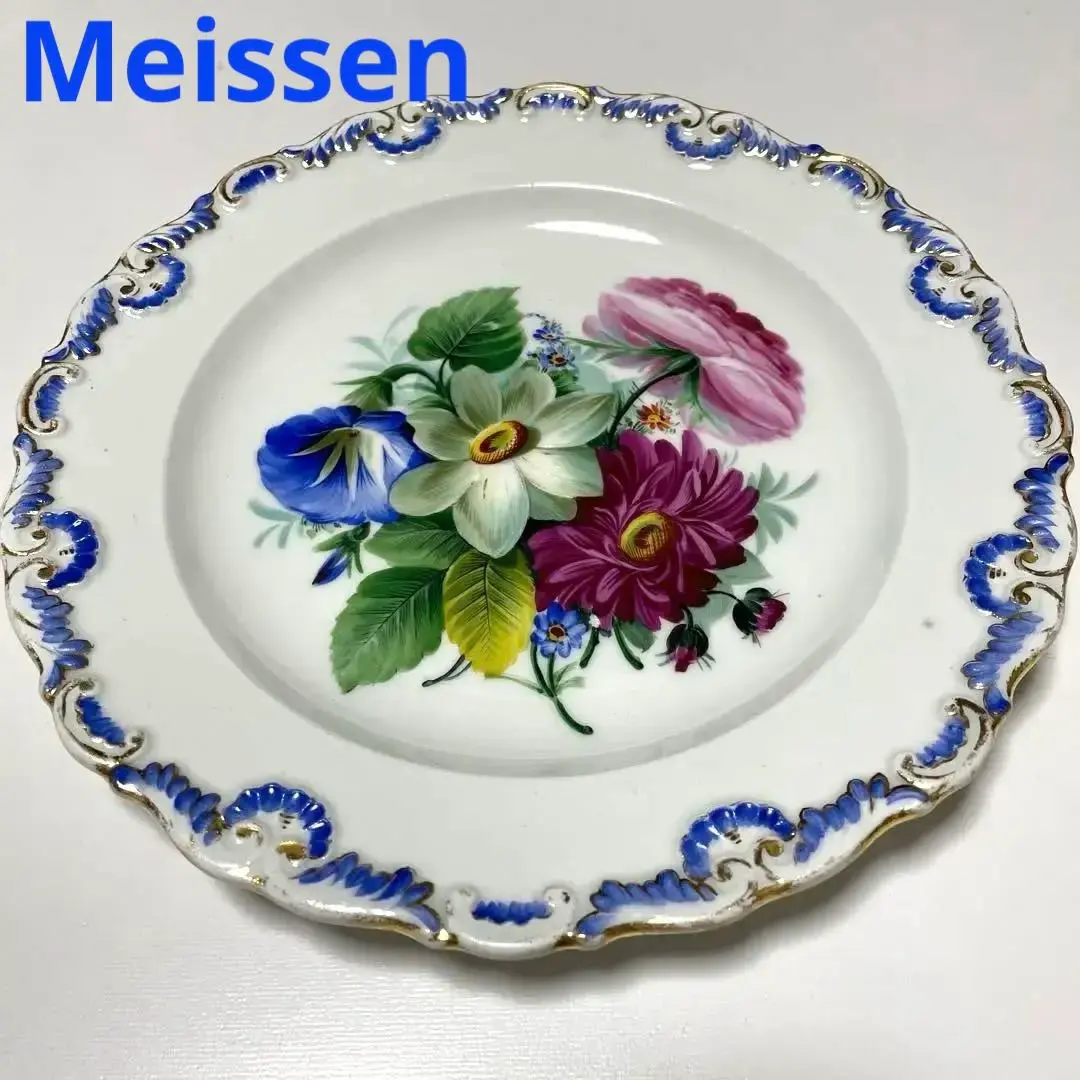 四つ花・エナメルと青の縁取り・21.3cm◇Meissen◇