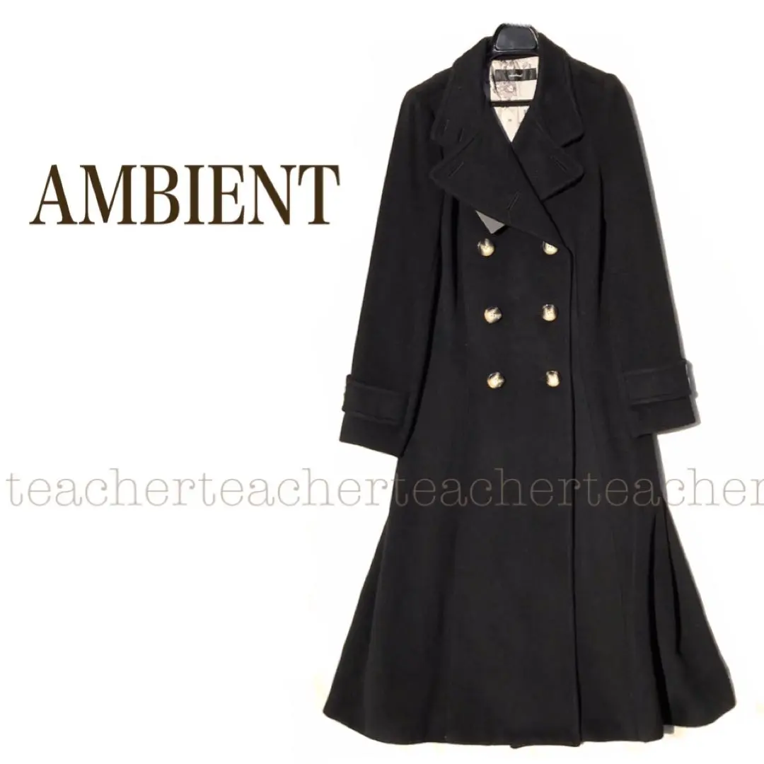 ウール ロングコート 黒 トレンチコート Aライン フレアー 素敵 上質 レース