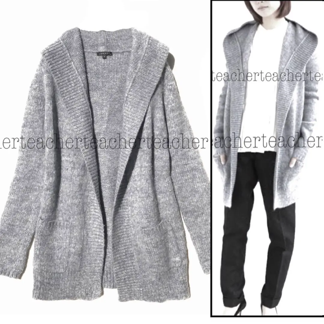 ウール ロング ニットカーディガン グレー リブ ふんわり 上質 コーディガン