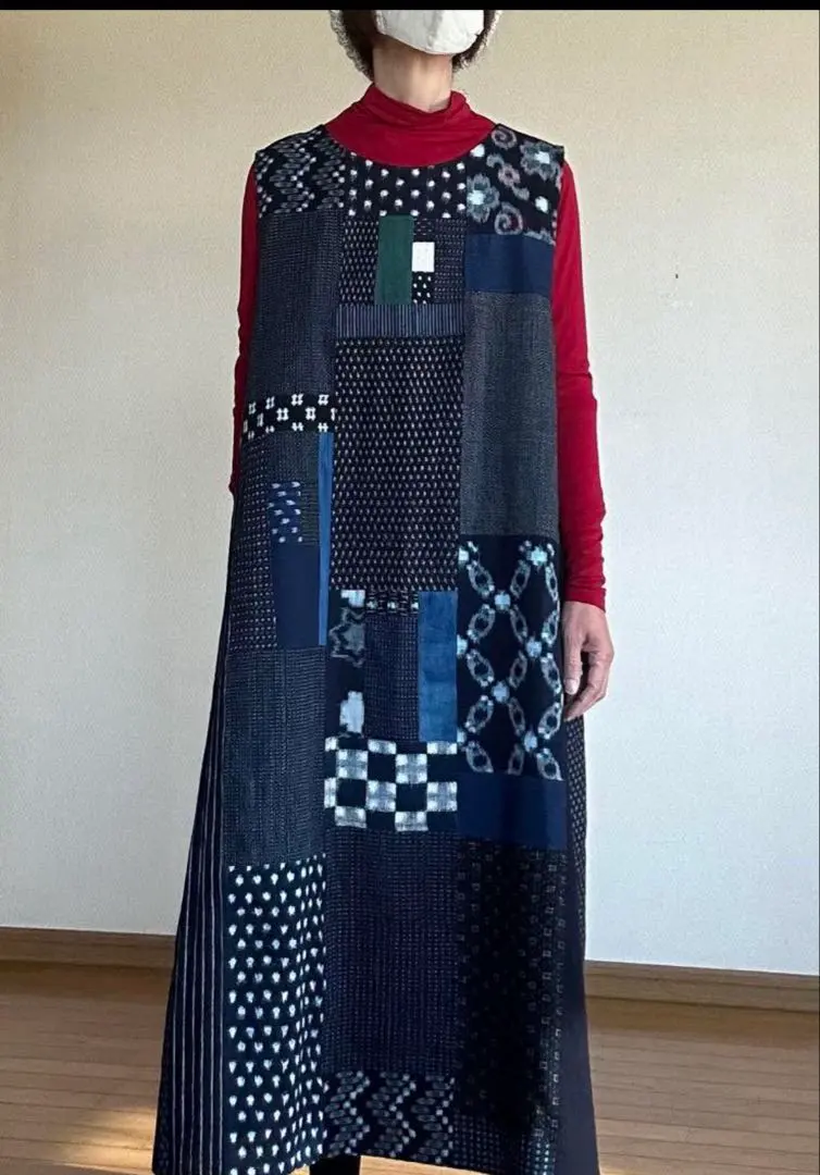 着物リメイク 絣パッチワーク ジャンパースカート ロング丈125センチ