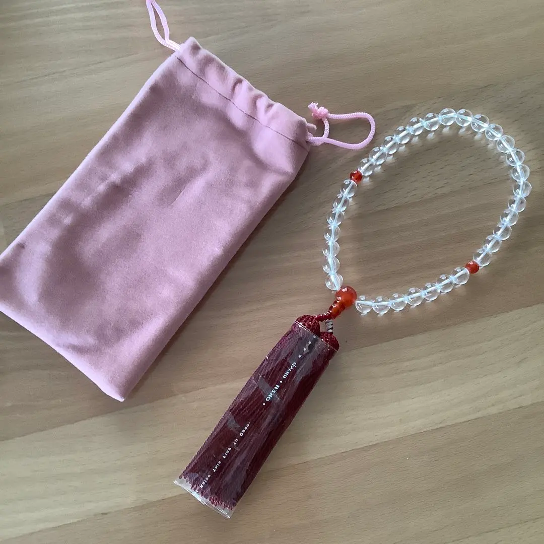 8mm本水晶/赤メノウの数珠(収納袋付き)