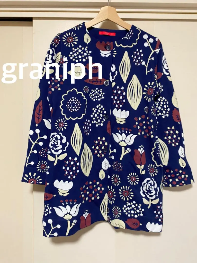 graniph グラニフ ネイビー スウェットカーディガン 総柄 ロング F
