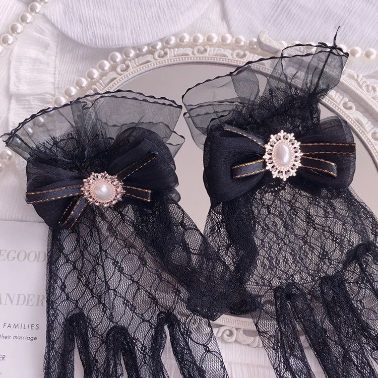レース ウエディンググローブ ゴスロリ 黒 リボン かわいい コスプレ 結婚式