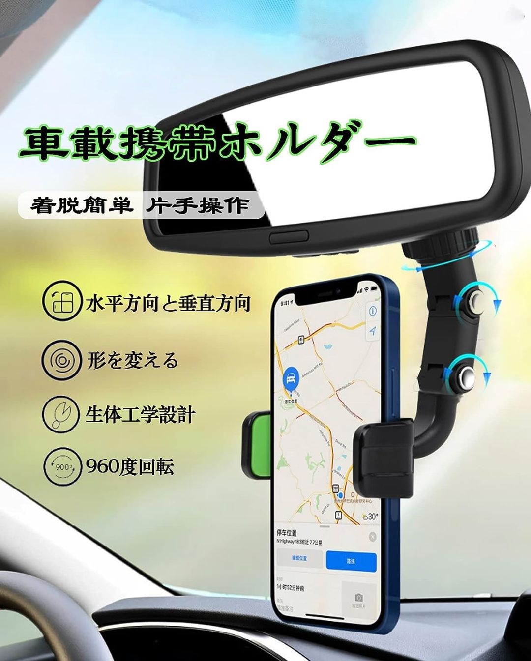 スマホホルダー バックミラー 車載 携帯ホルダー 多機種対応 着脱簡単