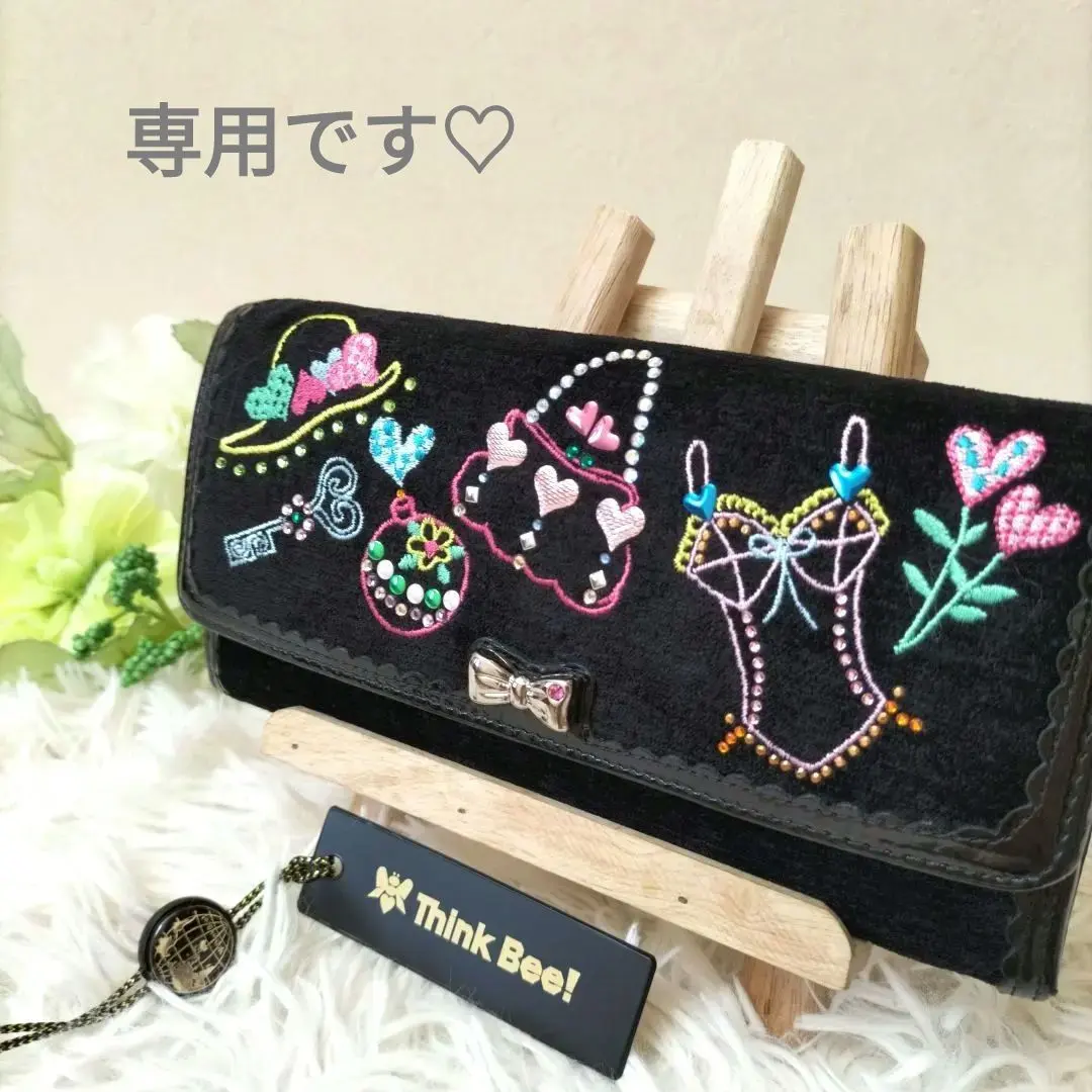 未使用級♡Think Bee! 長財布 ベロア 刺繍デザイン ブラック