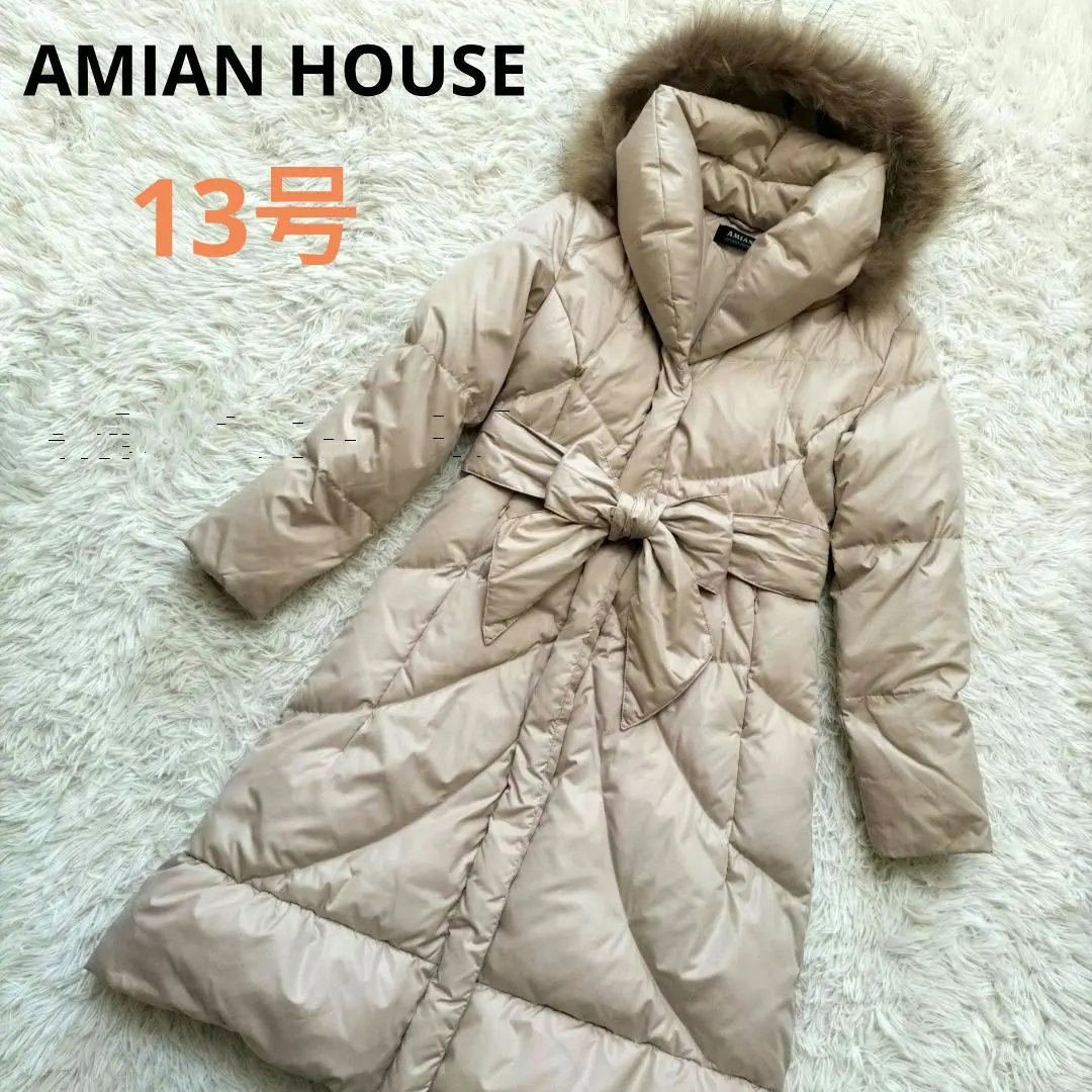AMIAN HOUSEダウンコート 女優襟 ラクーンファー2wayベージュ13号