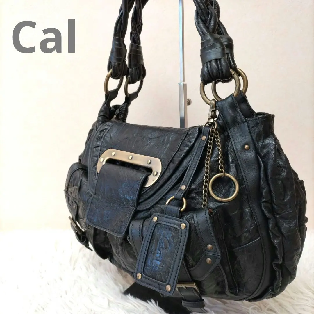 Cal カル ハンドバッグ ボストンバッグ シワ加工 羊牛 レザー 肩がけ