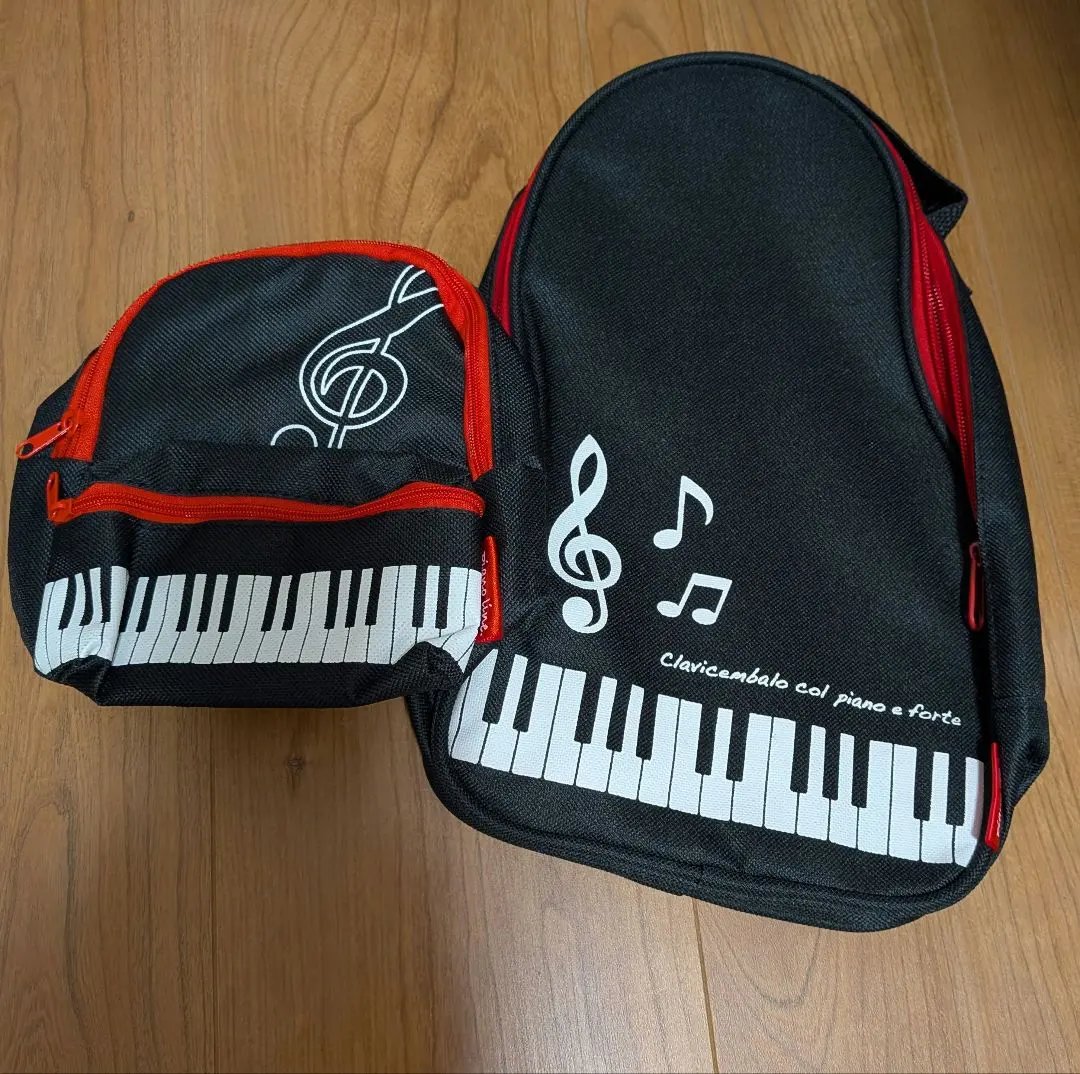 ピアノ柄 シューズバッグ リュック型ミニポーチ 2点