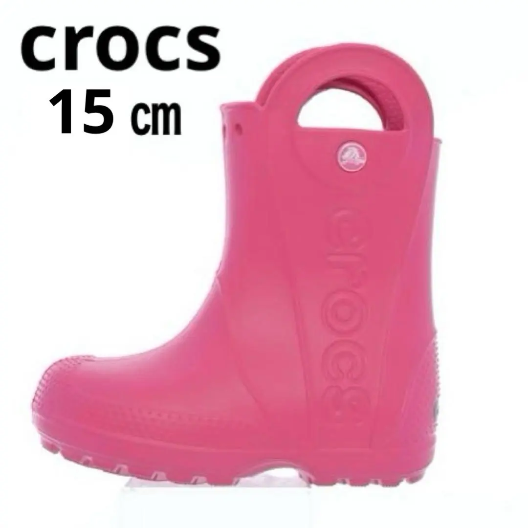 c7 crocs クロックス キッズレインブーツ ピンク ハンドル付き長靴