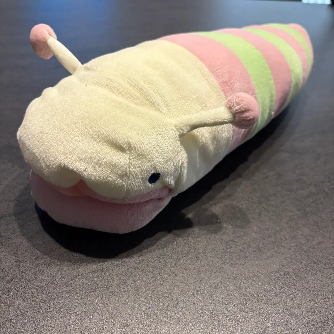 ミミズ型ぬいぐるみ ピンクと緑のストライプ