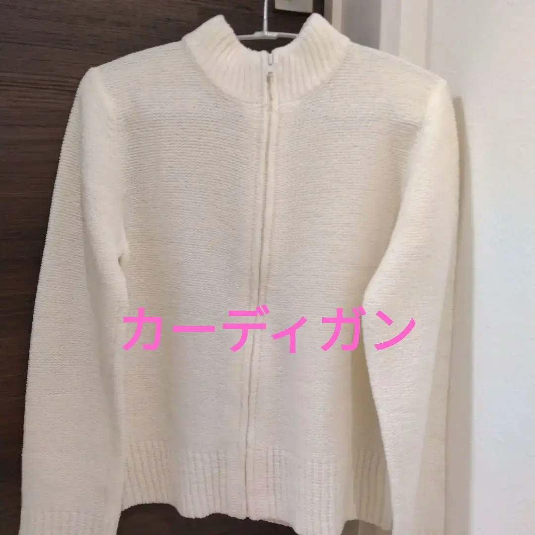 ショート カーディガン 白 ニット 前ファスナー 通勤通学