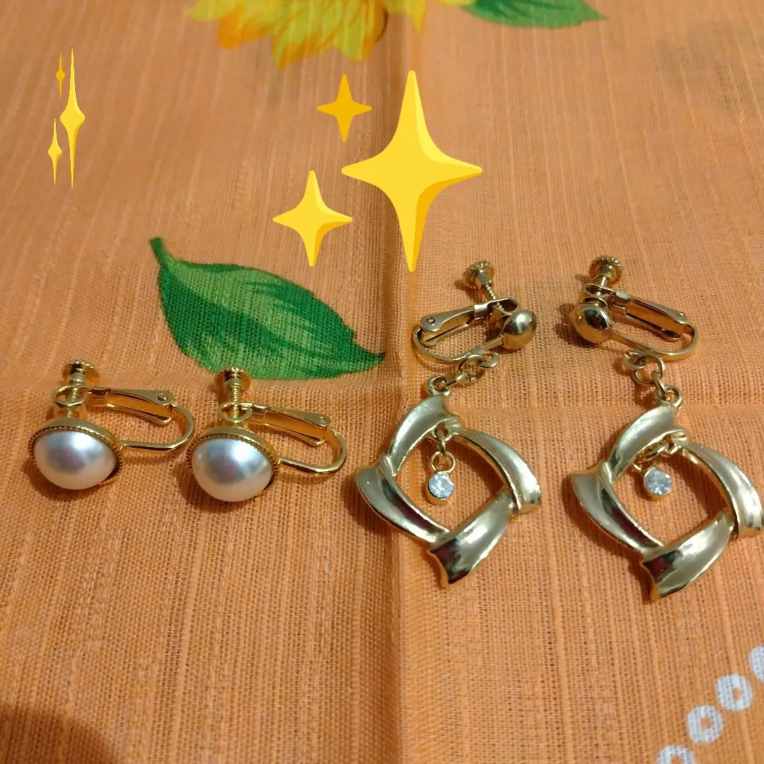 パール ゴールドフレーム イヤリング 2ペア