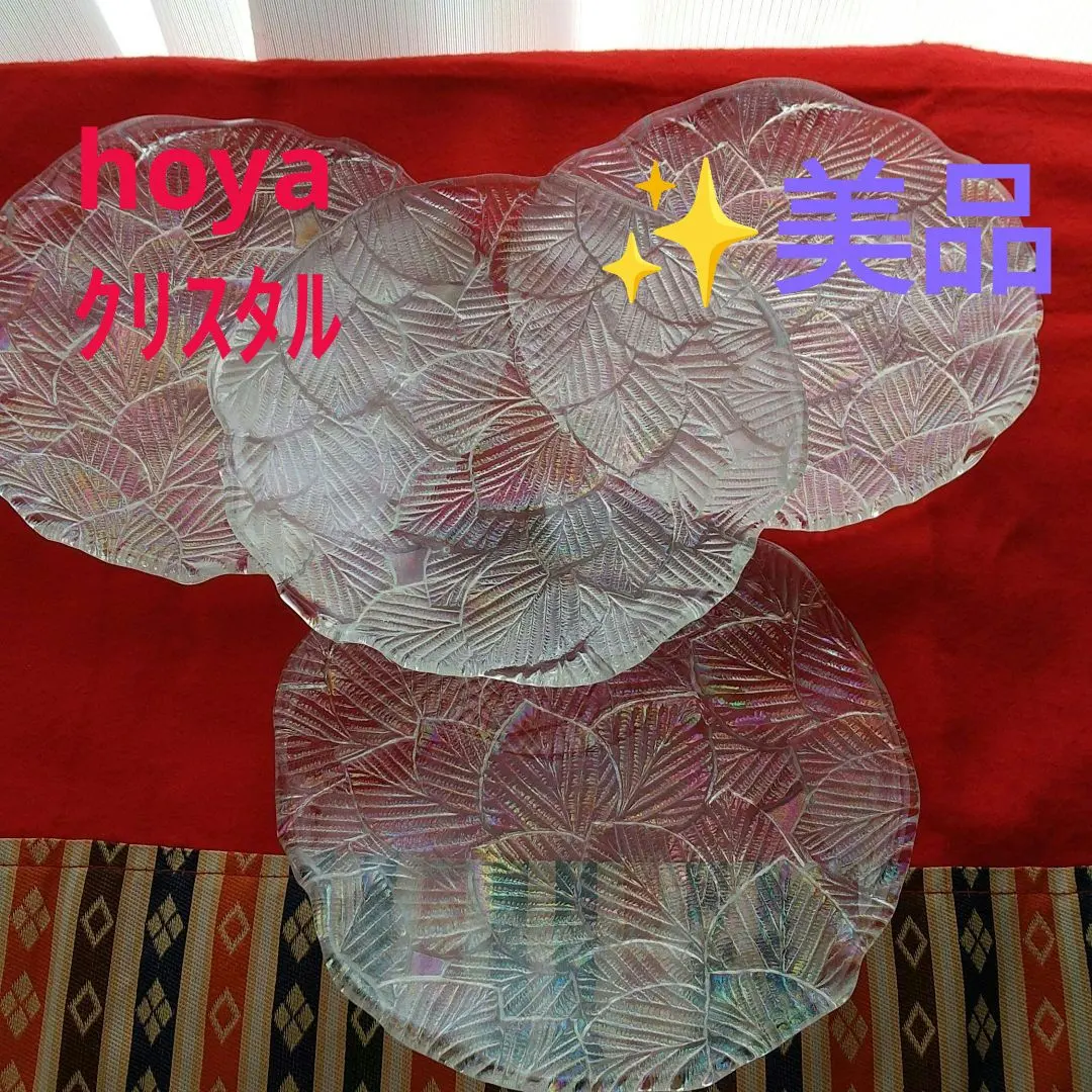 hoya ホーヤ クリスタル オーロラ レインボー 銘々皿 皿 美品 4枚