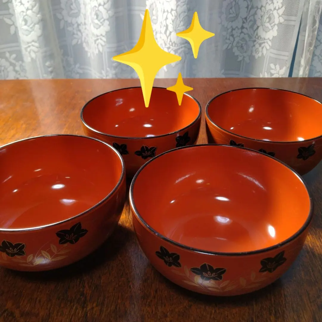 【美品】オレンジ色の汁椀4個セット お椀 塗り 食器 器