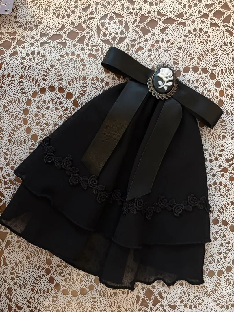 《axes femme》薔薇飾り付きリボンブローチレースコサージュ