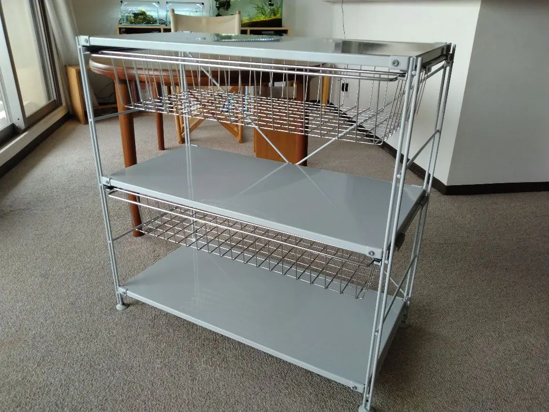 【美品】MUJI無印良品 スチールユニットシェルフ小ワイド86cmバスケット×2