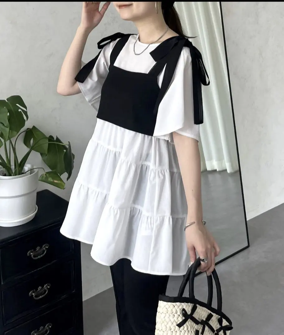 プロズヴェール 肩リボンビスチェセットティアードブラウス