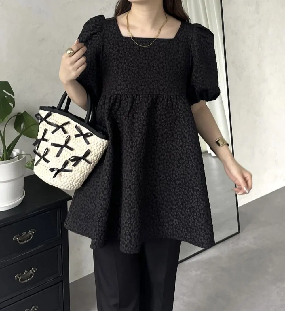 prose verse フラワージャガードパフスリーブAラインブラウス