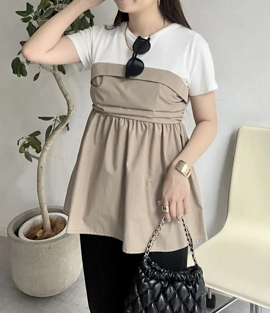 prose verse ギャザービスチェドッキングペプラムブラウス