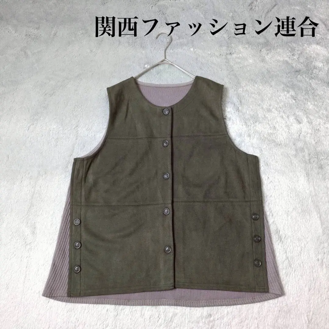 関西ファッション連合 ラウンドネック ベスト 異種素材 ベロア調 ニット 重ね着