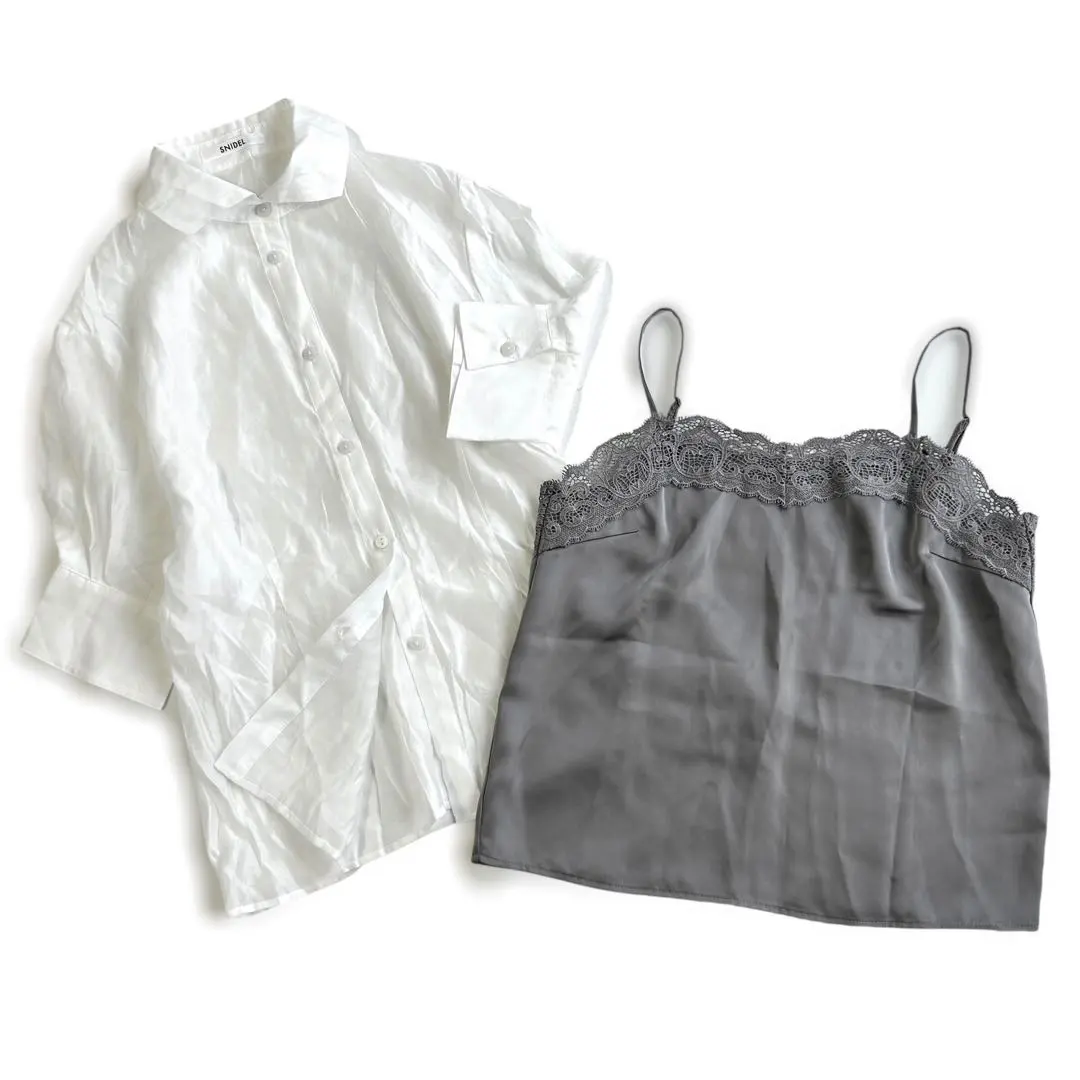 【美品】 スナイデル 半袖 ブラウス キャミソール付き 2023ss 白×灰 F