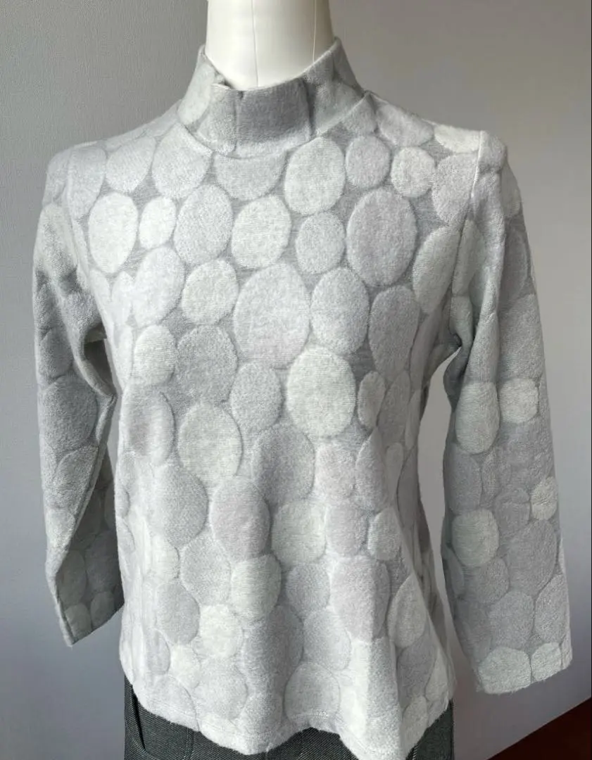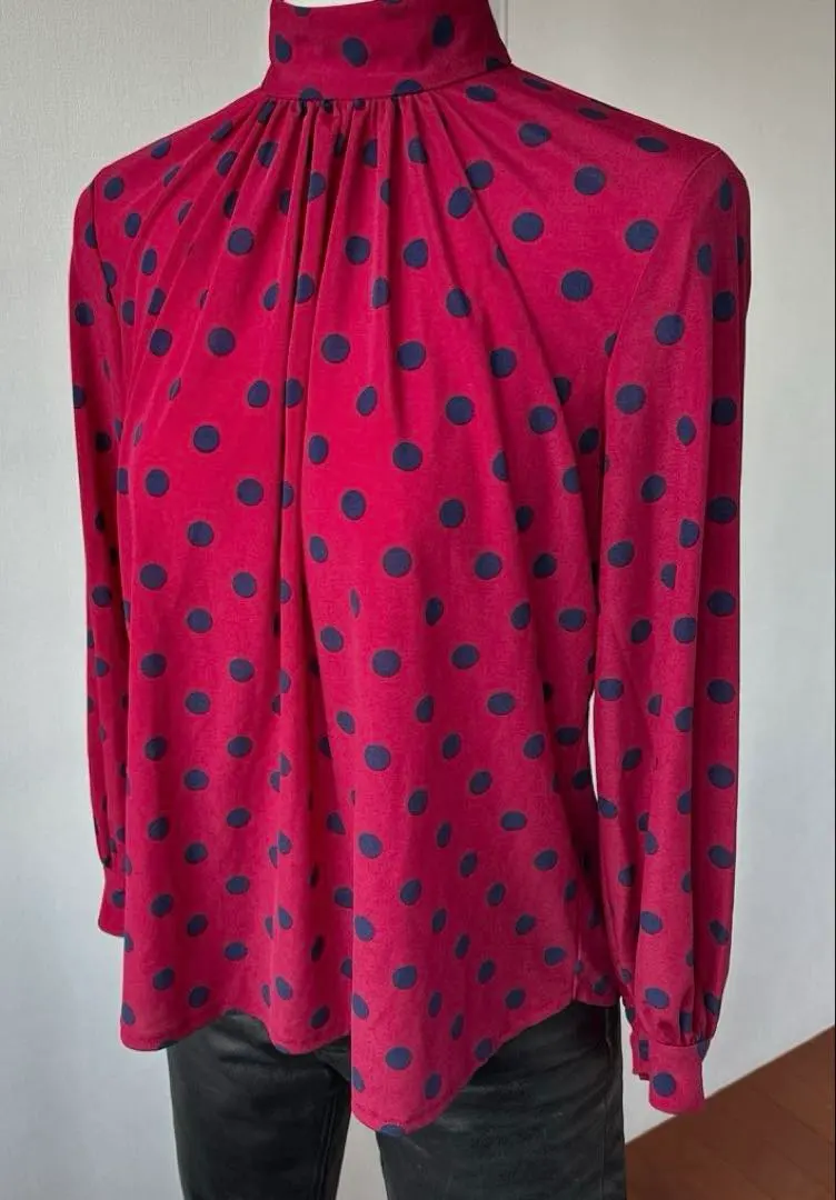 Gabardine KT 赤とネイビーのドット柄長袖ブラウス