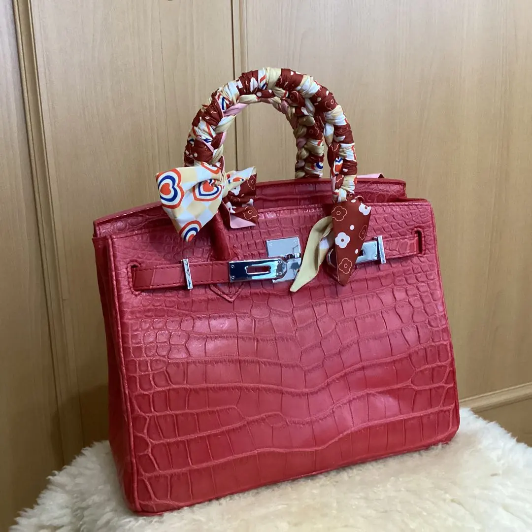 本物のワニ革ハンドバッグ , ショルダーバッグーsize 21-26 cm