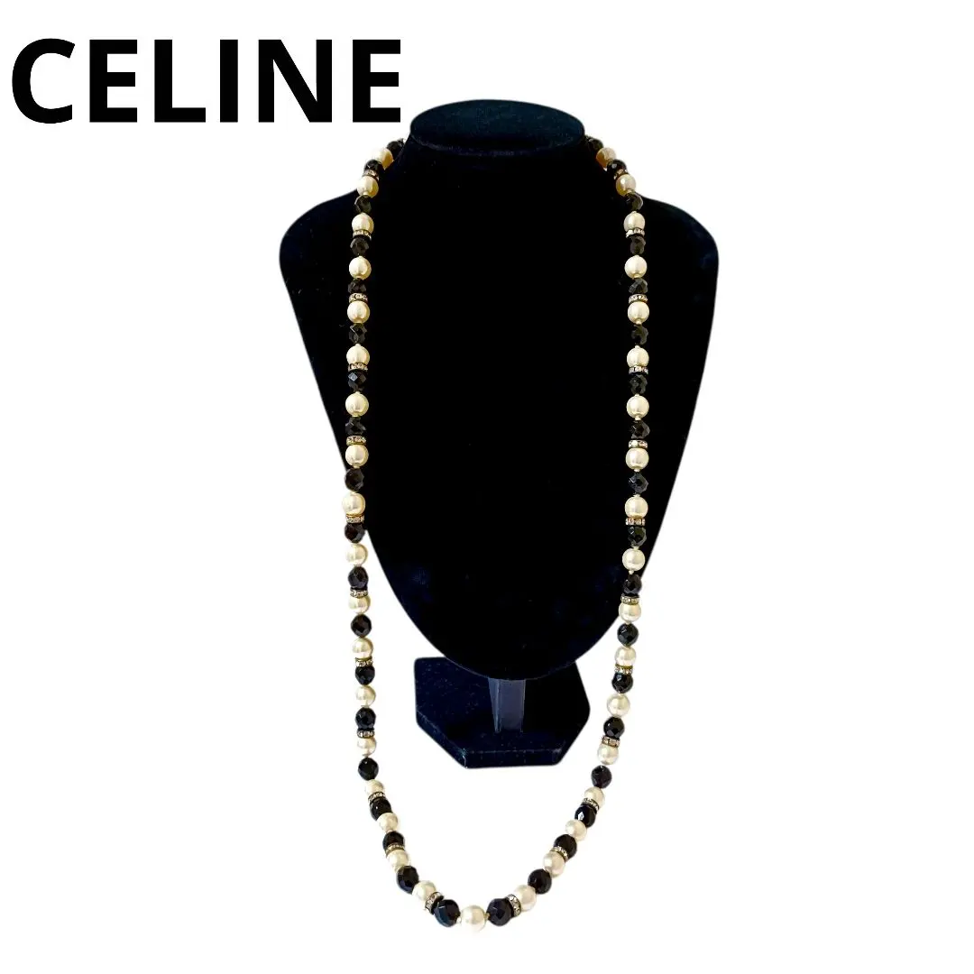 希少 セリーヌ ロング ネックレス CELINE ヴィンテージ パール ストーン