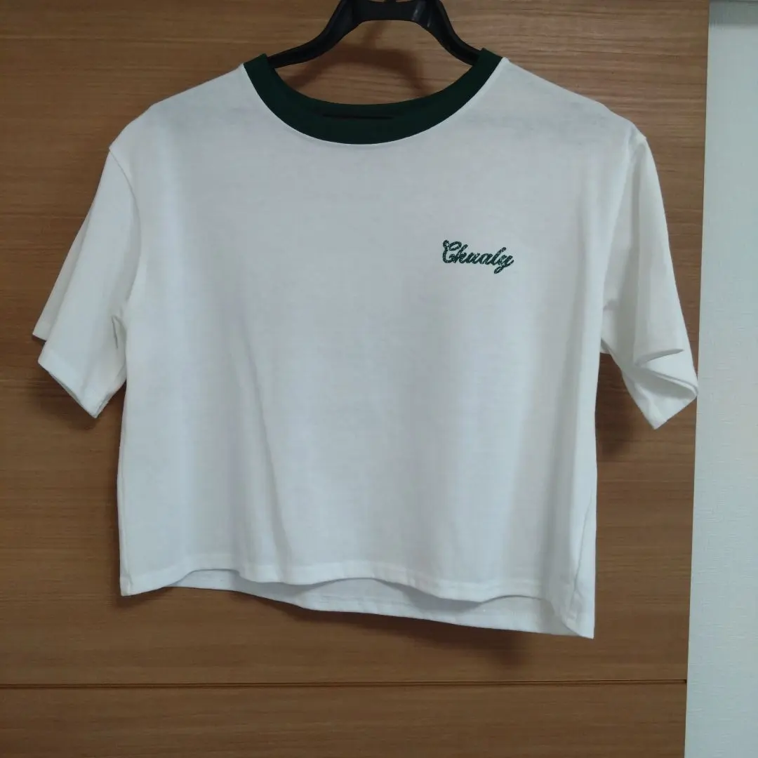 ホワイト ブラック スプラッタープリント クロップド長袖