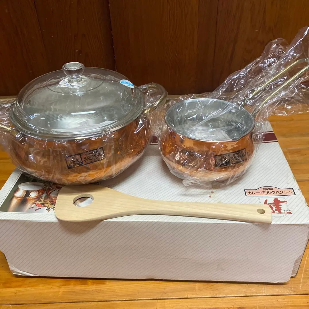【未使用品】丸山技研 銅製 カレーポット(蓋、木ベラ付)&ミルクパンセット 鍋