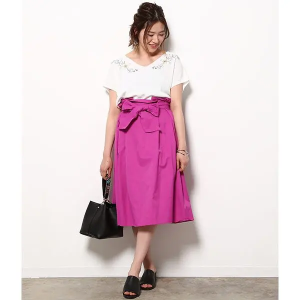 VIS ヴィス リボン付きハイウエストスカート